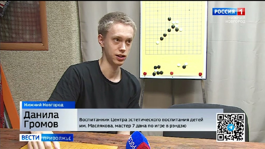 Данила Громов, Мастер 7 дана по игре в рэндзю, воспитанник Центра эстетического воспитания детей им. Маслякова: Первая официальная игра у меня была в 2015-м и вот прошло уже 10 лет, меня привели в эту игру мои одноклассники, сейчас они уже особо не играют, да и уже не одноклассники… А так игрой меня познакомил мой тренер Алексей Александрович Скуридин.