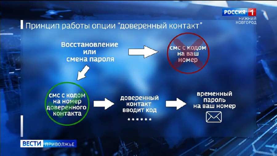 Представим, что мошенник пытается поменять ваш пароль на Госуслугах. Он под разными предлогами просит вас назвать код, который придет вам на телефон. Без новой опции код (это 6 цифр) получите вы. А с ней — ваш доверенный контакт. Он-то и проверит, не находитесь ли вы под влиянием мошенников. Если нет, если вы сами меняете пароль, доверенный контакт введет на Госуслугах полученный код подтверждения — и только после этого временный пароль для входа придет вам.