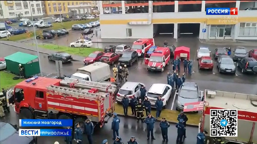 В Нижнем Новгороде спасатели МЧС отрабатывали разные способы тушения огня на высоте. По легенде горело 26-этажное здание. Основной целью пожарных было доставить необходимые для тушения вещества и воду на крышу высотки. Для этого спасатели использовали лестницы и «в ручном режиме» прокладывали рукавную линию на верхние этажи. Завершились учения тушением здания с помощью вертолета.