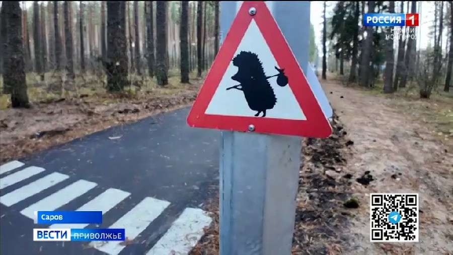 Андрей Батманов, Корреспондент ГТРК "Нижний Новгород": Первый вопрос, который у нас возник, когда мы сюда ехали: как ежи должны понять, что им надо переходить именно здесь? Но знак, естественно, установлен не для них, а для людей. Он призван напомнить о бережном отношении к окружающей среде и жителям леса.