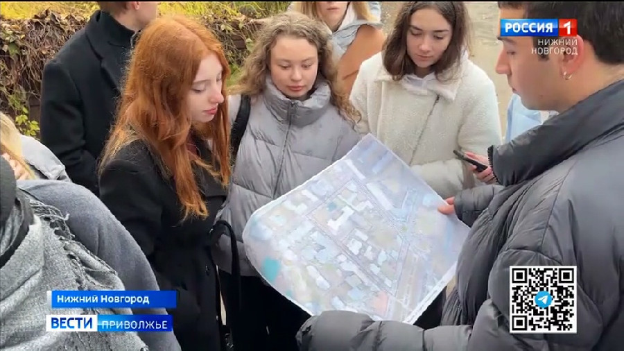 У студентов-архитекторов - выездное занятие на улице Алексеевской. Сегодня вместе с экспертами строительной отрасли они осматривают территорию под будущее благоустройство. Проект развития этого пространства в центре Нижнего Новгорода будущие архитекторы разрабатывают в рамках молодёжного конкурса-акселератора "ПРО ГОРОДА".