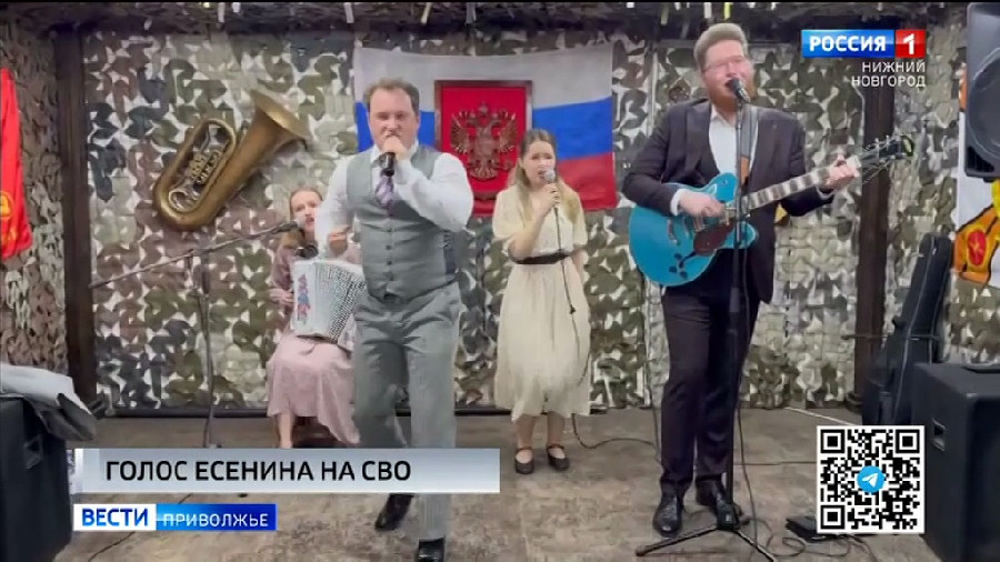 Под аккордеон и гитару артисты исполнили песни на стихи знаменитого русского поэта Сергея Есенина, который горячо любил свою Родину. Кстати, именно в этом году исполнилось 130 лет со дня его рождения. Буквально под землей совсем рядом с боевыми действиями нижегородскую команда из 4-х артистов подарила военнослужащим 27-й Гвардейской Севастопольской мотострелковой бригады копию знамени Победы, которое в мае 45 года советские бойцы Егоров и Кантария водрузили на крыше поверженного рейхстага.