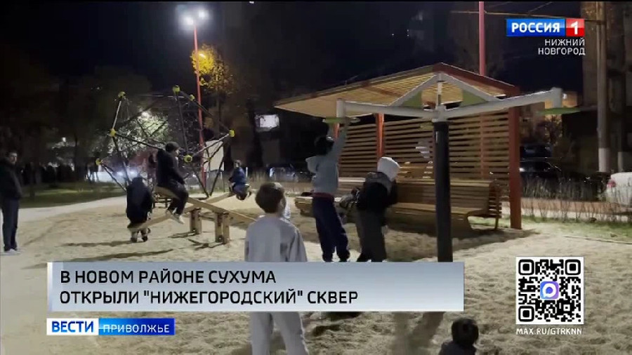 Благоустроенный сквер осмотрели первый заместитель руководителя администрации Президента России Сергей Кириенко, президент Абхазии Бадра Гунба и глава Нижнего Новгорода Юрий Шалабаев. Детские площадки, качели, амфитеатр, яркие малые архитектурные формы, зелёные насаждения – теперь у 40 тысяч жителей нового района в столице Абхазии есть свой собственный «Нижегородский сквер» площадью почти 2 гектара. Здесь также установили светодинамический музыкальный фонтан, который «поёт» «Сормовскую лирическую».