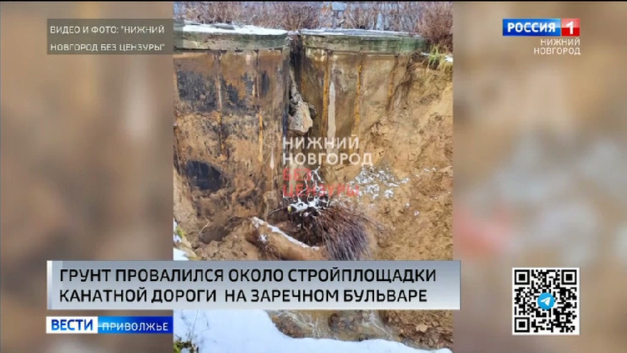 Грунт провалился около стройплощадки новой канатной дороги на Заречном бульваре