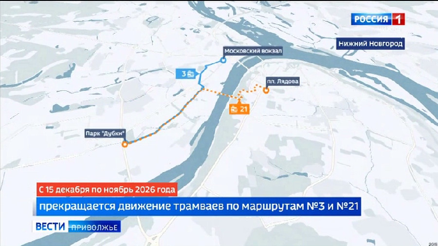 В Нижнем Новгороде почти на год перестанут ходить трамваи №3 и №21. 15 декабря начинается замена трамвайных путей от Комсомольской площади до парка «Дубки». Пути на этом участке были построены еще в 1926 году и последний раз их частично ремонтировали в 2008 году. Подрядчику предстоит заменить более 8 км рельсов и контактную сеть. Завершить работы планируется в ноябре 2026 года. На время ограничений пассажирам предлагают добираться от Комсомольской площади до парка «Дубки» на автобусах №№ 20, 64, 40, 58, 81 и 83.