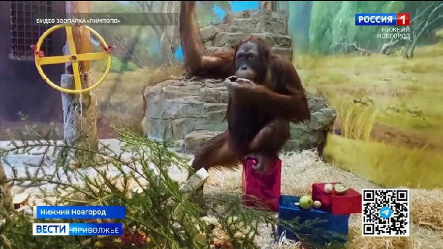 Орангутаны Ларсен и Аполлон из нижегородского зоопарка получили новогодние подарки