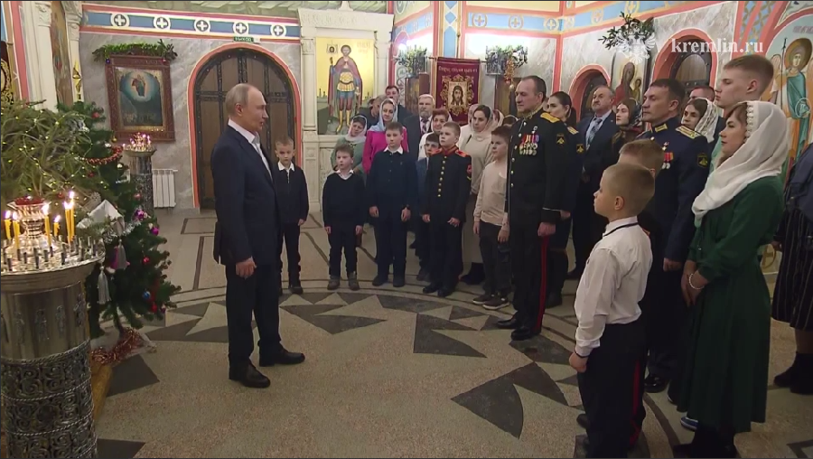 В Рождественскую ночь Владимир Путин присутствовал на богослужении в храме великомученика Георгия Победоносца в Подмосковье. По окончании службы глава государства пообщался с присутствовавшими в храме.