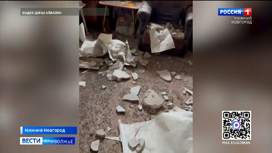 Большие куски штукатурки отвалились с потолка в квартире пенсионерки в Нижнем Новгороде