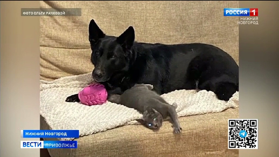 Со временем Фантик подружился с лошадьми, а теперь воспитывает домашнего кота. И даже на пенсии он на страже – охраняет свою хозяйку.