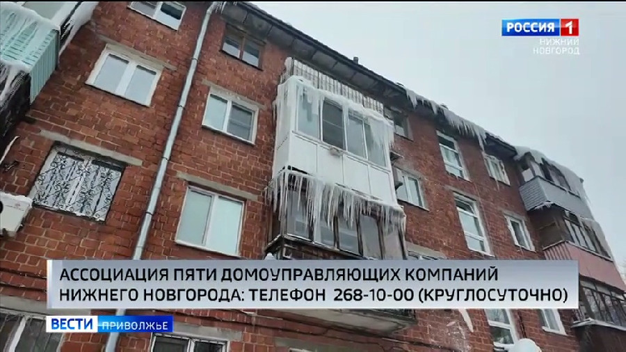 Марина Ревягина, корреспондент ГТРК "Нижний Новгород": Длинна ледяных наростов на 37 доме по улице Генкиной в несколько раз превышает мой рост. О весе судить не берусь, но очевидно, что если такая громадина упадет на прохожего - ничем хорошим это не закончится.
