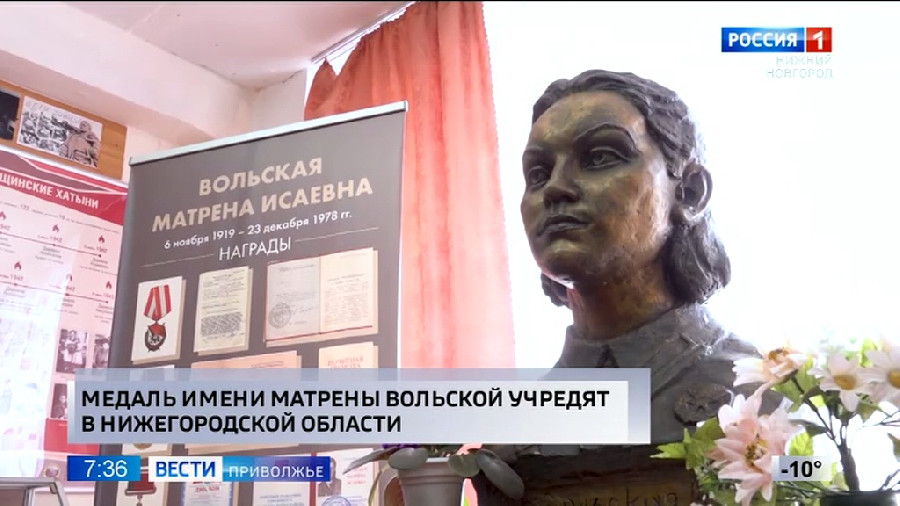 Соответствующее решение приняли депутаты регионального парламента. Награду будут вручать педагогам, наставникам, волонтерам - тем, кто вносит значительный вклад в патриотическое воспитание детей и молодежи. Изначально, отметил спикер Законодательного собрания Нижегородской области Евгений Люлин, идея учредить медаль Матрены Вольской принадлежала комсомольцам - еще в советские годы. Дело в прошлом году продолжил Молодежный парламент. Его представители внесли инициативу ввести такую награду. Коме того, накануне имя Матрены Вольской присвоили Смольковской школе в Городецком округе. В Смольках Матрена Вольская осталась жить после войны.