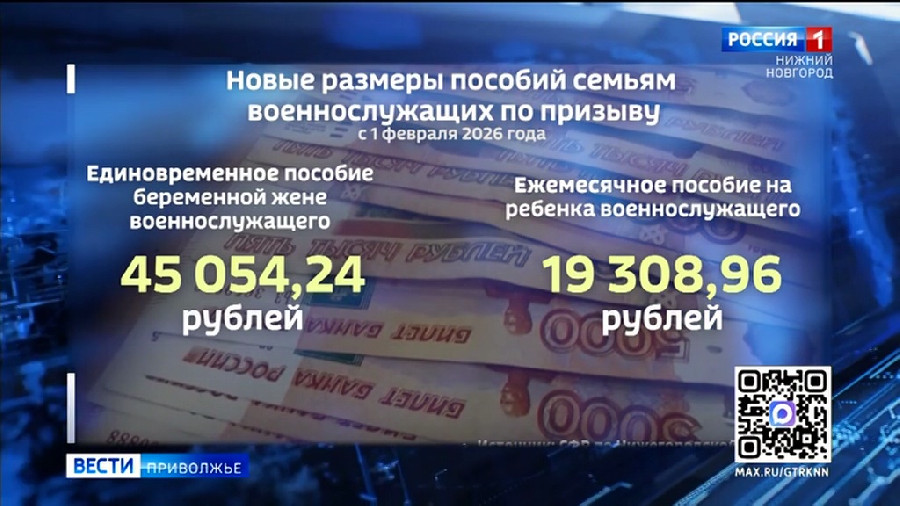 С февраля в Нижегородской области выросли пособия для семей военнослужащих по призыву. Индексация составила 5.6 процентов. Единовременная выплата беременной жене солдата теперь составляет 45 тысяч 54 рубля, а ежемесячное пособие на ребёнка - 19 тысяч 309 рублей. Право на пособие до трёх лет есть не только у мамы, но и у опекуна или родственника, который фактически ухаживает за ребёнком. Оформить выплаты можно в клиентской службе социального фонда, через "Госуслуги" или МФЦ.