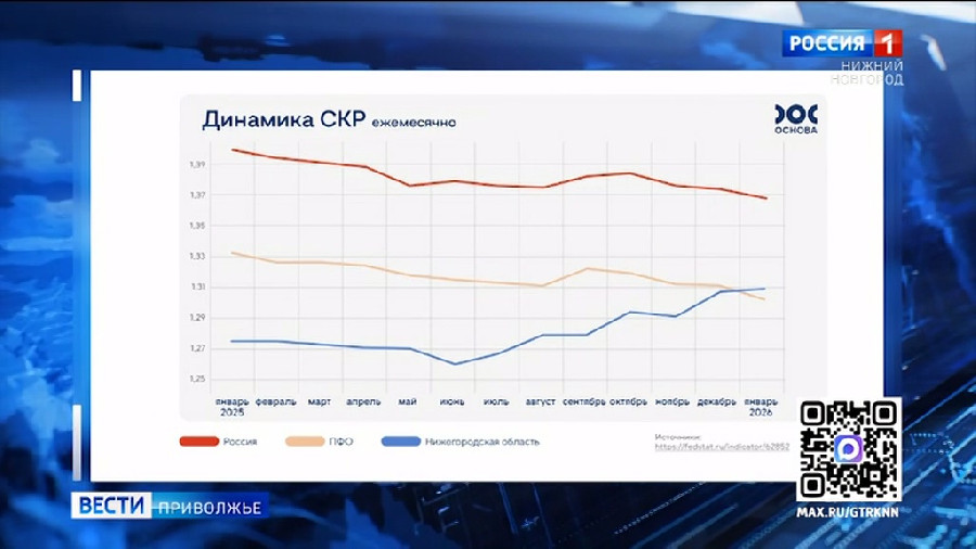 Показатель Нижегородской области пока ниже, но начал расти, с июля продолжает демонстрировать устойчивую положительную динамику. И за январь - впервые за всю историю наблюдений - превысил СКР по ПФО. Губернатор Нижегородской области Глеб Никитин связывает это с эффективными мерами поддержки семей с детьми. В первую очередь - это безусловный материнский капитал. 1 миллион рублей за каждого ребенка нижегородские семьи могут получить без каких-либо ограничений. Региональные выплаты доступны в виде ежемесячной «зарплаты родителя», целевых выплат или комбинации вариантов.