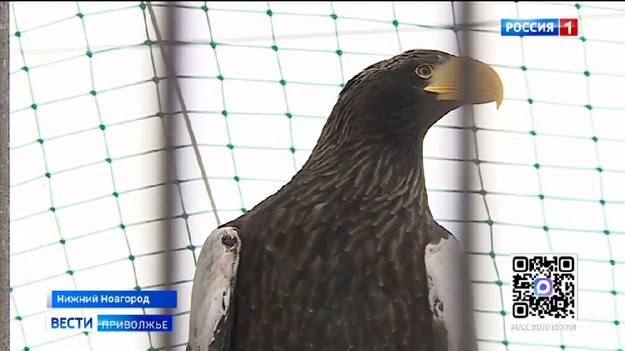 «Белоплечий орлан — очень редкий вид птиц. Общая их численность — всего около 5 тысяч. Обитают обычно в Хабаровском и Камчатском краях, Магаданской и Сахалинской областях. Как птица оказалась в Нижегородской области, можно только предполагать. Уже две недели она живет в вольере, пока не летает. Но уже делает первые успехи — небольшие перелеты с места на место».
