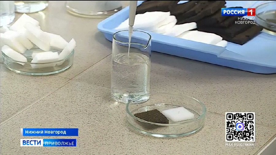 "Самый главный фактор — это, конечно же, время. В течение 24 часов он пропитывается, происходит химическая реакция. Губка приобретает чёрный оттенок, далее мы их высушиваем спустя сутки, и готовый образец имеет вот такой уже вид".