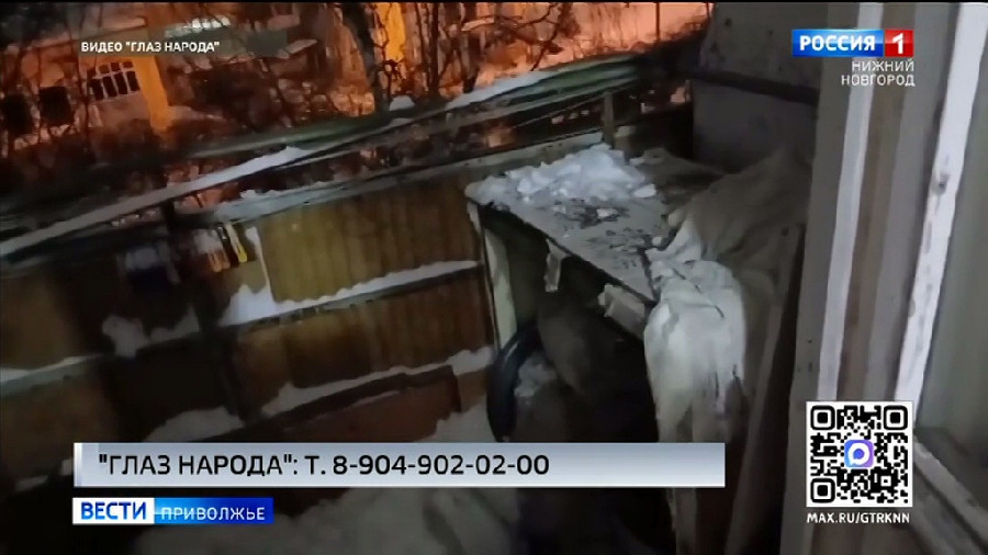 Снег с крыши снёс козырёк балкона дома №16 по Гаугеля в Сормовском районе