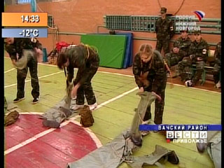 Пока старшие ребята приносят торжественную присягу, их смена активно осваивает воинскую премудрость, причем среди них не мало и девушек.