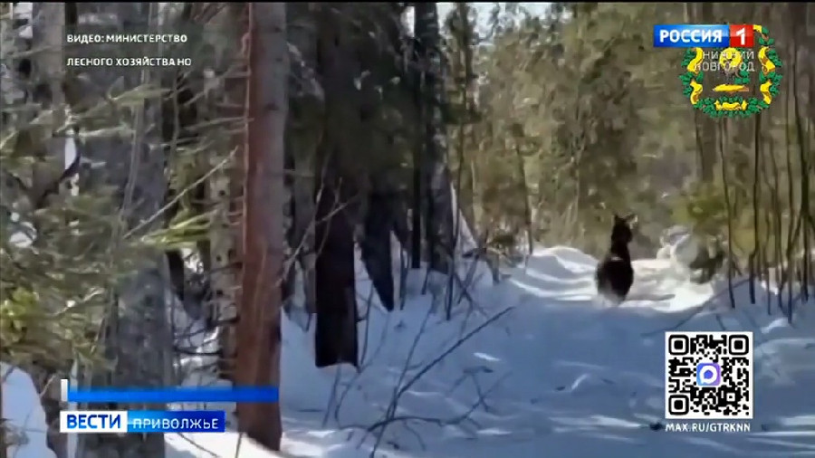 На кадрах видно, как животные уверенно и неторопливо пробираются через высокие сугробы. Видео снято в охотничьих угодьях в Воротынском и Тоншаевском округах.