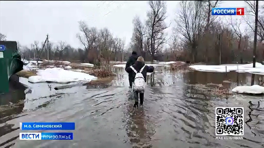 Жители нескольких улиц в Семенове теперь выходят из дома только со сменной обувью. Добраться до "большой земли" невозможно без резиновых сапог. Нине Калугиной с внуком и вовсе пришлось временно покинуть свое подтопленное жилище.