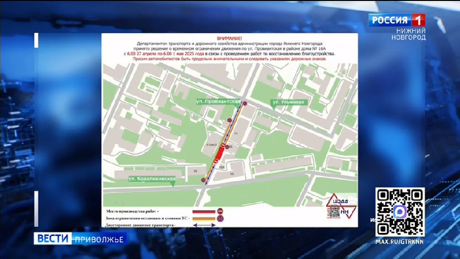 Об этом сообщает наш канал в мессенджере МАКС со ссылкой на центр организации дорожного движения. Движение закроют до 6 утра 1 мая в районе дома №16 А. На отрезке от Ковалихинской до Ульянова временно организуют двустороннее движение. Объехать можно будет по улицам Ковалихинской, Нестерова и Ульянова.