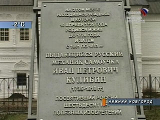 21 апреля исполняется 270 лет со дня рождения знаменитого нижегородца, выдающегося русского изобретателя-самоучки Ивана Петровича Кулибина. В этот день в Нижнем Новгороде увековечили его память: на месте родовой усадьбы Кулибиных в Крутом переулке Нижнего Новгорода была установлена мемориальная доска, и она единственная во всей России.