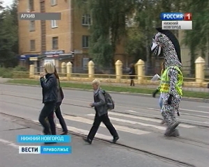 Уважаемая Зебра встретит школьников на дорогах в День знаний. Ростовые куклы-зебры будут дежурить на пешеходных переходах и помогать нижегородцам безопасно переходить через дорогу. В ГИБДД надеются, что "Уважаемая Зебра" станет не только забавным подарком маленьким пешеходам в День знаний, но и напомнит детям о необходимости соблюдать правила дорожного движения.