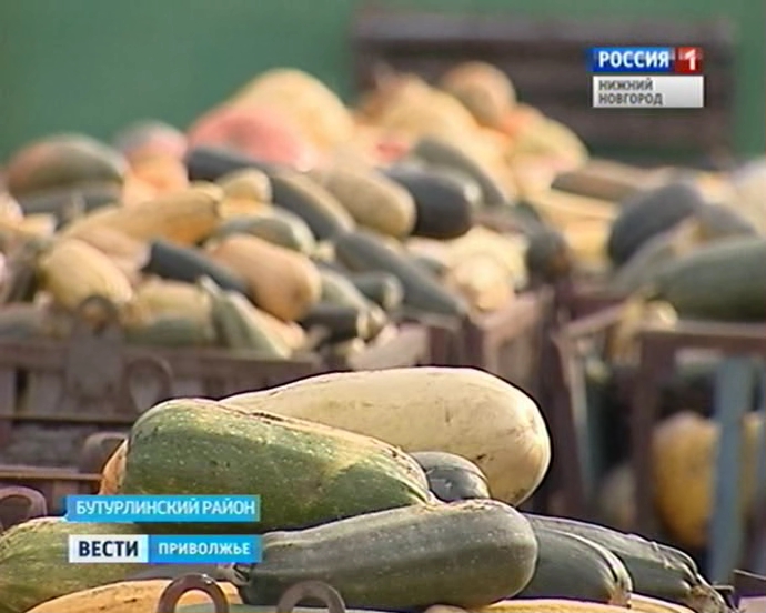 Тыкву - на сок, кабачки - на икру. Сергей Демидов привез из Гагинского района в соседний Бутурлинский, на консервный завод, 1,5 тонны продукции с приусадебного участка.