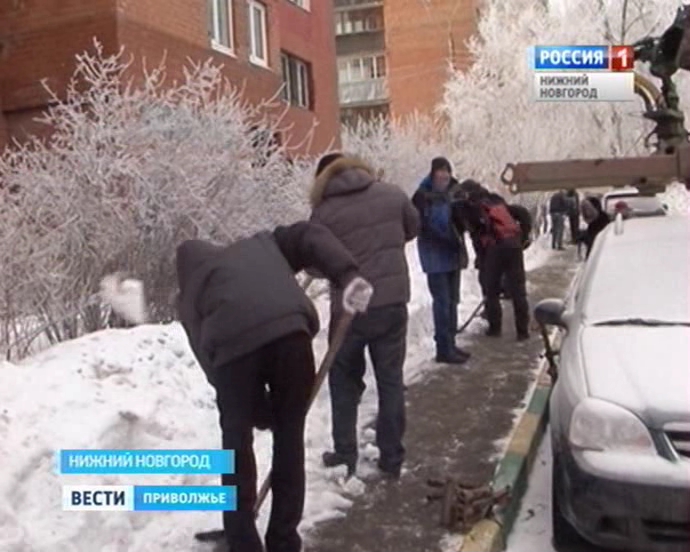 Эксперимент по уборке придомовых территорий сразу целого квартала провела администрация Советского района Нижнего Новгорода. Сотрудники администрации района, специалисты домоуправляющей компании, ТСЖ и работники дорожных служб вместе приняли участие в уборке снега в жилом квартале на пересечении улиц Киевская, Невзоровых, Тунгусская и Генкиной. Работала погрузочная техника и самосвалы, дворники и сами жители домов. Всего 60 человек. Жильцов предупредили заранее, поэтому большая часть автомобилей была убрана от подъездов. Автомобили, которые мешали уборке, перемещались на свободные участки, после чего возвращались на место. Эксперимент был признан удачным, теперь такая практика будет применяться регулярно.
