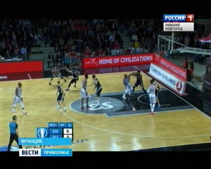 По сумме двух матчей "горожане" уступили французскому "Страсбуру". Последняя встреча команд состоялась накануне на паркете французского клуба. Нижегородцам, проигравшим первый матч необходимо было обыграть соперника с разницей в 10 очков. После первой четверти "горожане" вырвались вперед на 8 баллов.